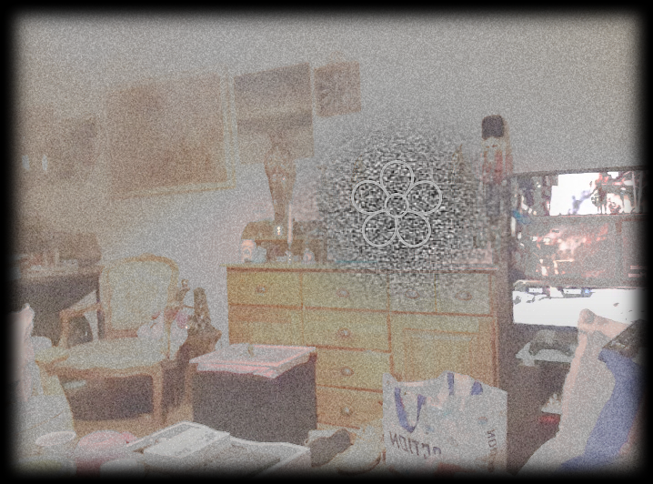 • One time, I, through the visual snow, saw the moving part have an overlay of and move simultaneously with a hand holding a computer mouse. In this case, in the same way, I vaguely saw an arm or a leg at the part of the curtain that was moving in the wind, moving simultaneously with it - as if it was the one moving the curtain! I tried to talk to it. I could also feel the presence in my actual feeling, changing as I had said something to it (in a way I couldn't have produced myself: suddenly I felt something 'sitting', or 'pulling', on my energy). It was obvious to me there was something there. Then, I saw it come towards my head (and quickly saw a hand in there) and it gave a sort of electric shock to, as it were, my mental eye, or the end of my 'mental tentacle', located at the point between both eyes, or the center of your vision (I suppose this is what's called 'the third eye'): the organ with which you see mental shapes - resulting in me seeing the outline of a blue square for a fraction of a second simultaneously with the shock. I saw how this energetic center produced the light grain I was seeing, and I could feel the 'electric' shock strengthen and consolidate/reinforce my whole mental organ/infrastructure (coming from the hallucinatory image I saw with it, so as it were a specific 'frequency' you have to focus on, so also strengthening that image or 'frequency') we don't regularly use in daily life on top of the image we normally see (our regular vision). A couple minutes later, I felt it sending a shock through me to that which you look at with the eyes, which you also feel a little bit - so the shock ending up there where you feel it with and in my eyes, producing a changing light, changing every fraction of a second in kind/appearance: bright hallucinatory blue light as well as the light you see when you rub your eyes too hard. I saw it, as it were, move the light away from me to my right - almost as if it was collecting a sample of sorts. The place in the picture below is what I was looking at when both things actually happened. It's worth mentioning my neighbor (from a different apartment in our house) had a friend over, so a theory could be our auras interacted. But that doesn't explain how it acted on its own volition like that. This story shows how this 'ethereal light' or intensified visual snow goes hand in hand with an ethereal presence, and can give you the sensation there is someone there. Also, it shows that these hallucinations are connected to one's psychic (visual) organ - and that those hallucinations correspond to actual energy in its field.